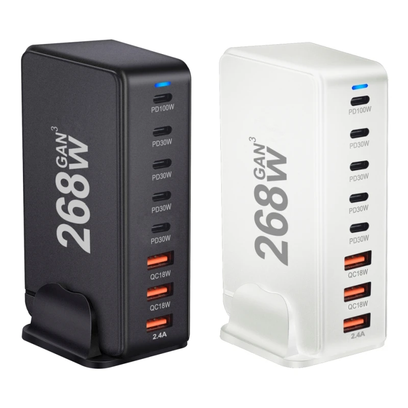 268w gan carregador de secretária 8 portas usb pd carregador carga rápida 3.0 usb tipo c carregador rápido carregador usb móvel para iphone 15 macbook
